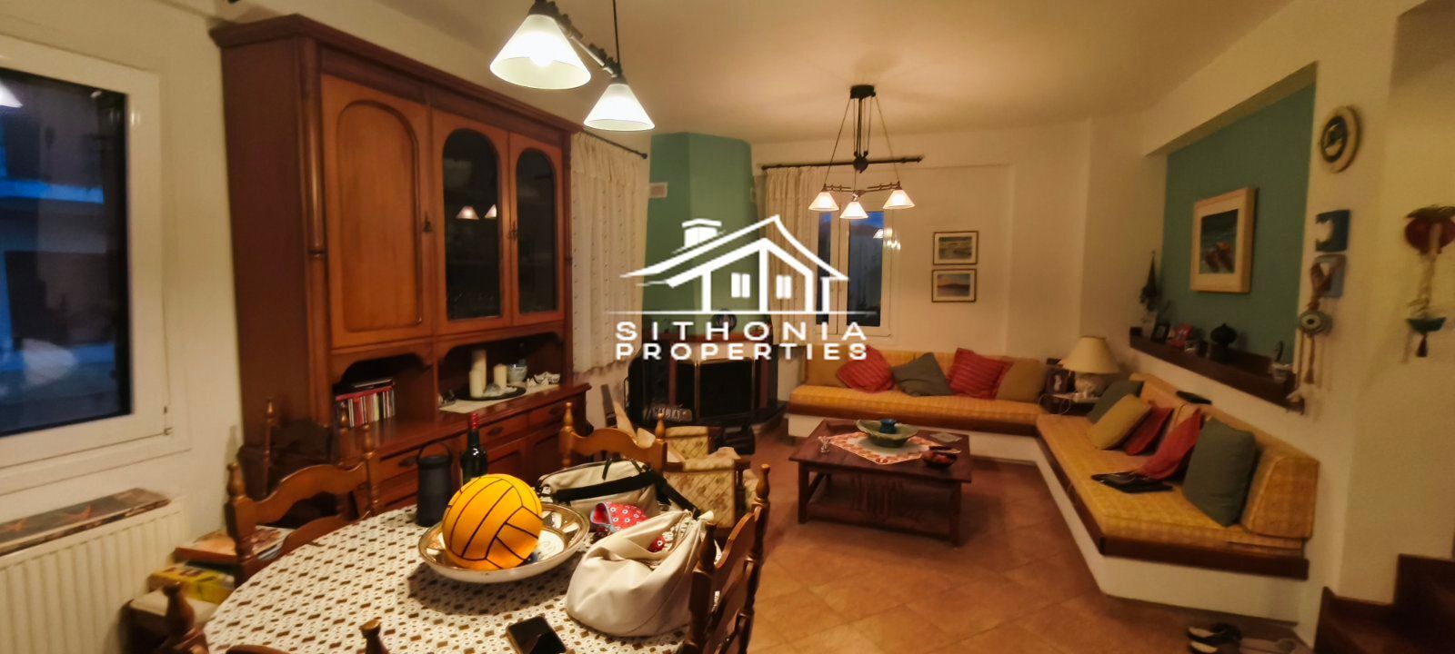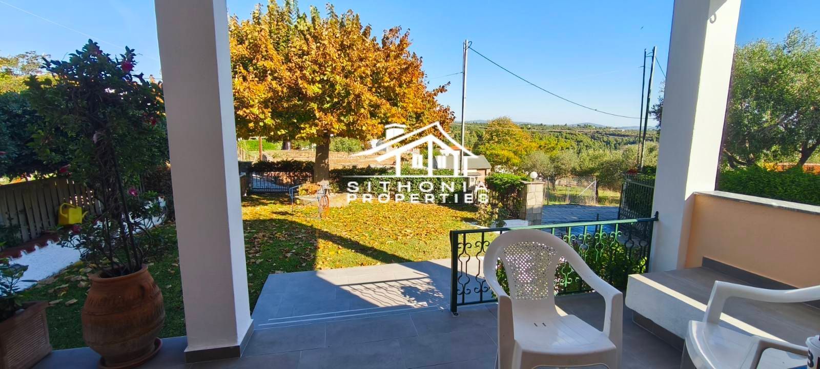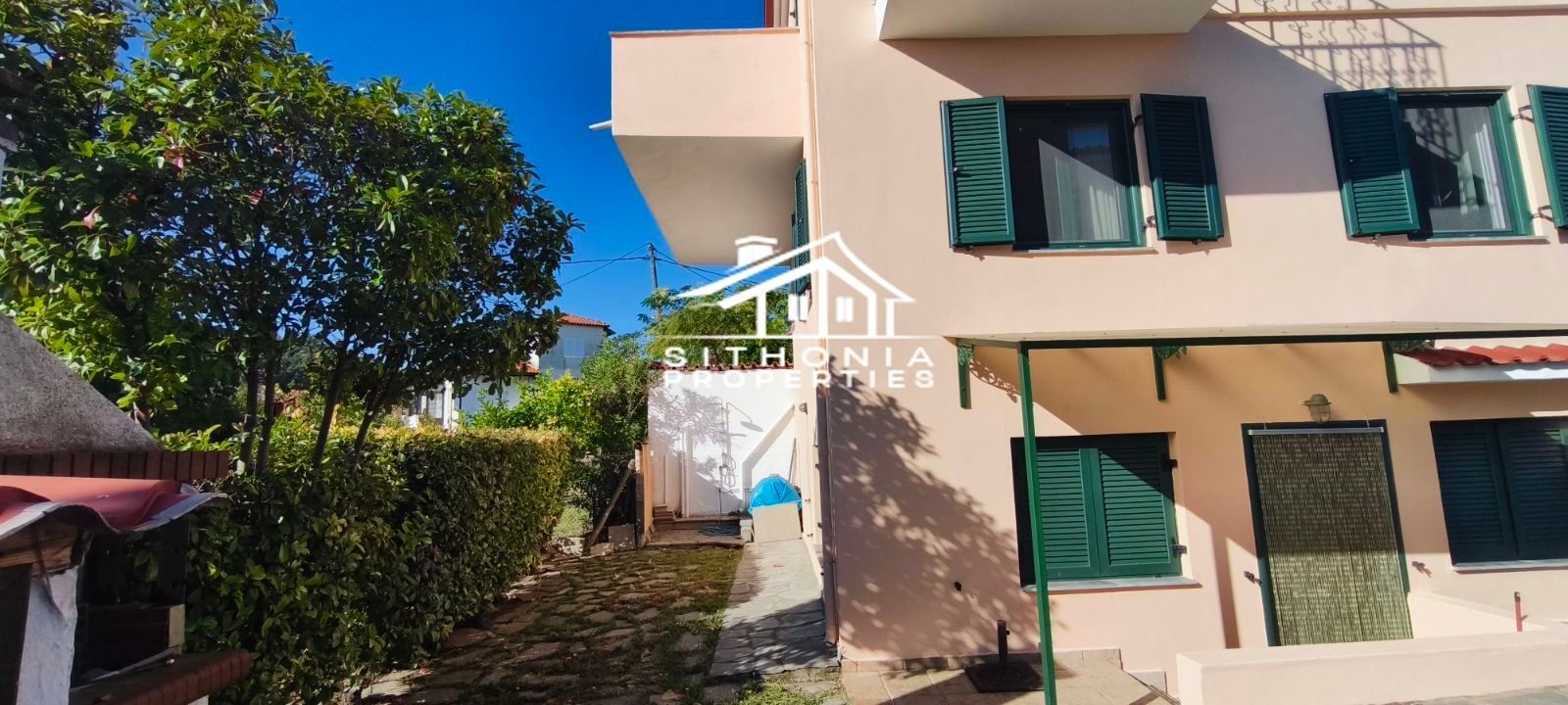 È adatta sia come residenza permanente che come casa per le vacanze, ma anche per uso professionale, in quanto può essere divisa in 2 appartamenti. È molto vicina al centro del villaggio, molto pittoresco con le sue case in pietra. A piedi in pochi minuti si raggiunge la piazza, circondata da taverne, caffè e bar. Nelle vicinanze si trovano le spiagge di Livrochio (Trani Ammouda), Pyrgos Vourvourou, ecc.