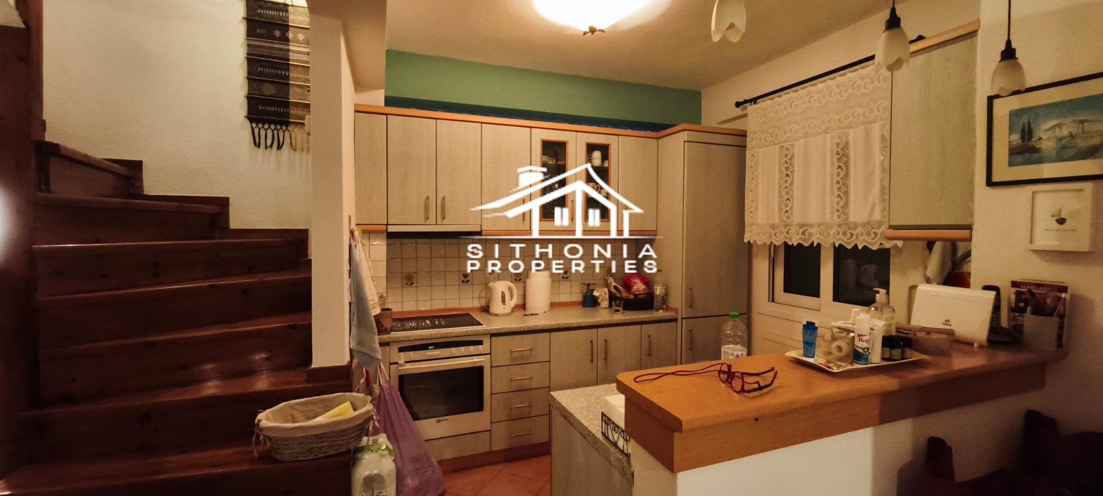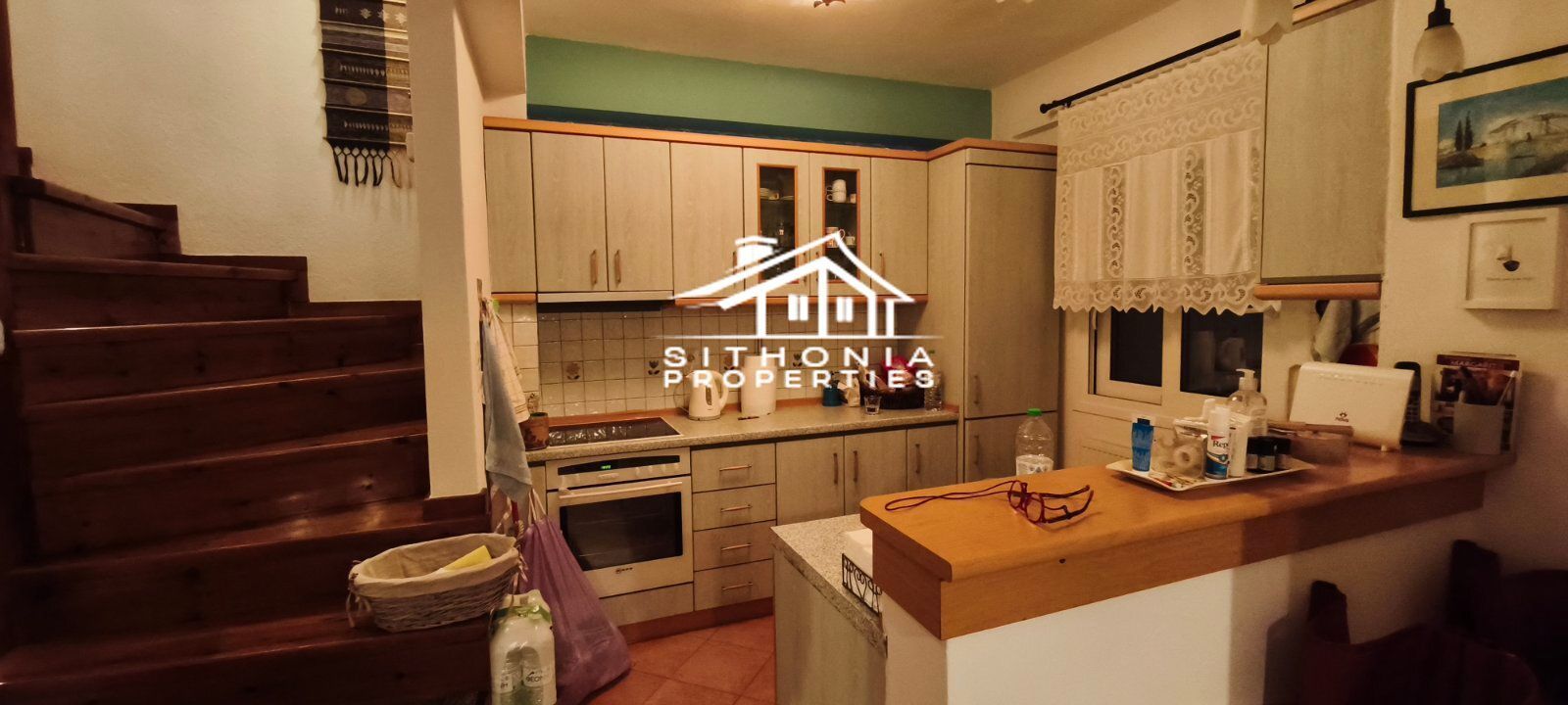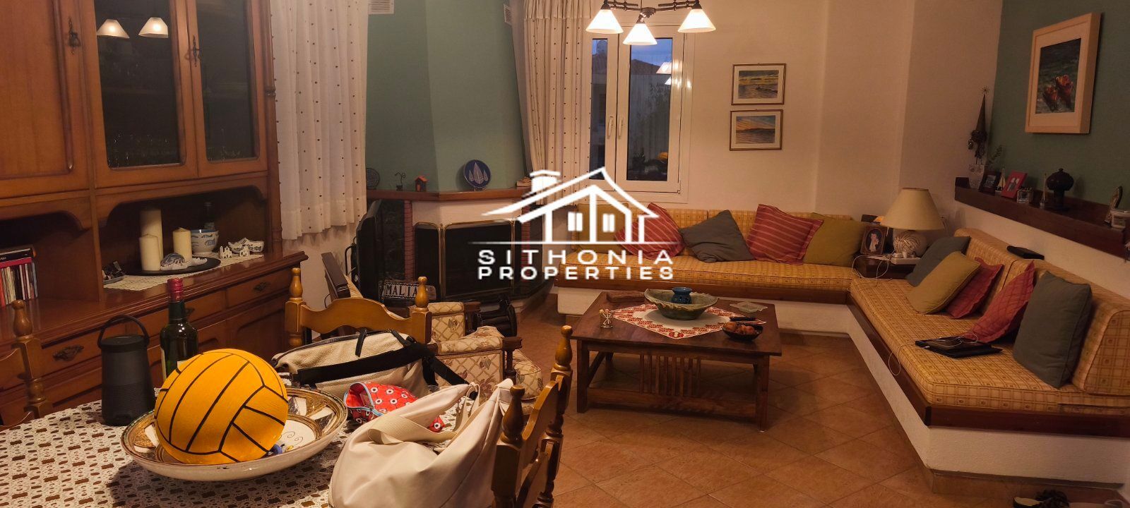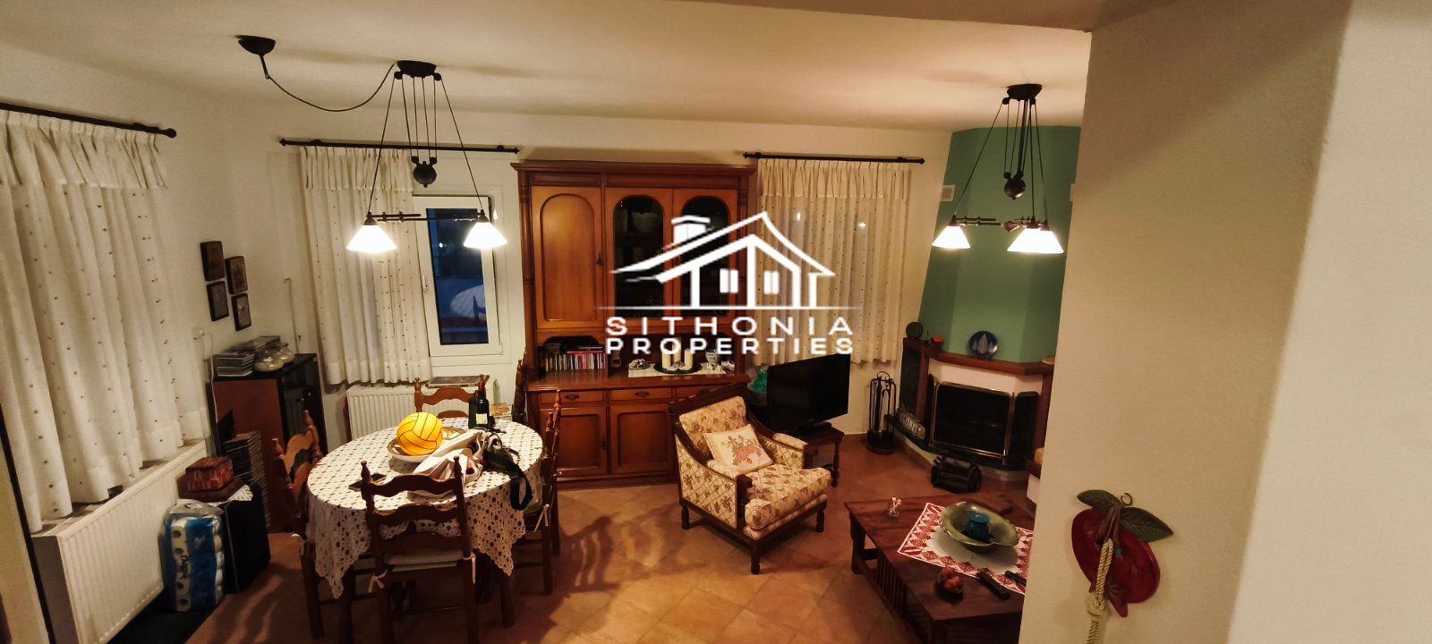 È adatta sia come residenza permanente che come casa per le vacanze, ma anche per uso professionale, in quanto può essere divisa in 2 appartamenti. È molto vicina al centro del villaggio, molto pittoresco con le sue case in pietra. A piedi in pochi minuti si raggiunge la piazza, circondata da taverne, caffè e bar. Nelle vicinanze si trovano le spiagge di Livrochio (Trani Ammouda), Pyrgos Vourvourou, ecc.